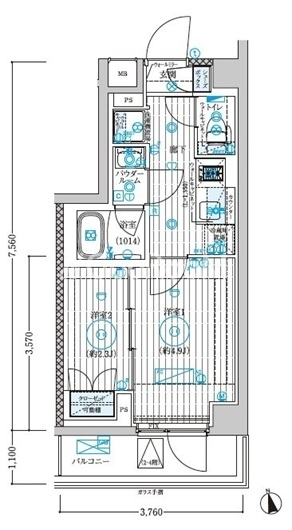 | 間取り | 2K | 専有面積 | 25.9㎡ |