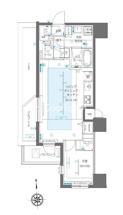 南西向き、 広さ45.84㎡のお部屋です。