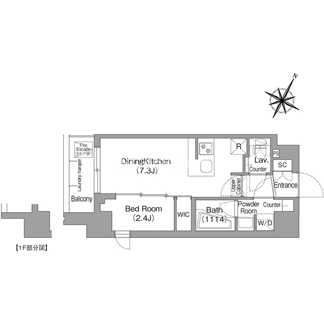 | 間取り | 1DK | 専有面積 | 25.42㎡ - 25.96㎡ |