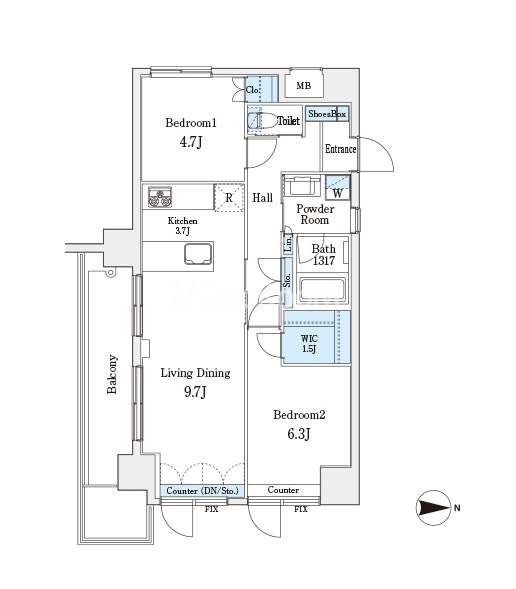 | 間取り | 2LDK | 専有面積 | 55.72㎡ |