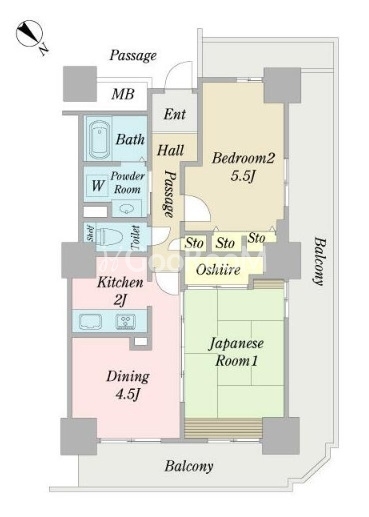 | 間取り | 2DK | 専有面積 | 52.84㎡ |