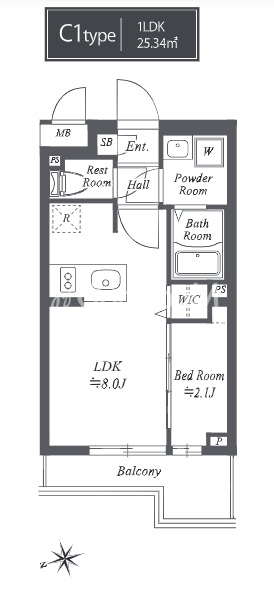 | 間取り | 1LDK | 専有面積 | 25.34㎡ |