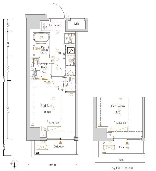 | 間取り | 1R - 1K | 専有面積 | 20.73㎡ |