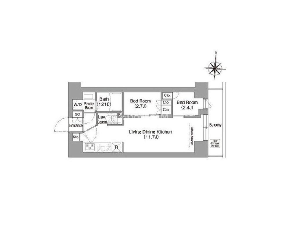 間取り | 2LDK | 専有面積 | 37.84㎡ |