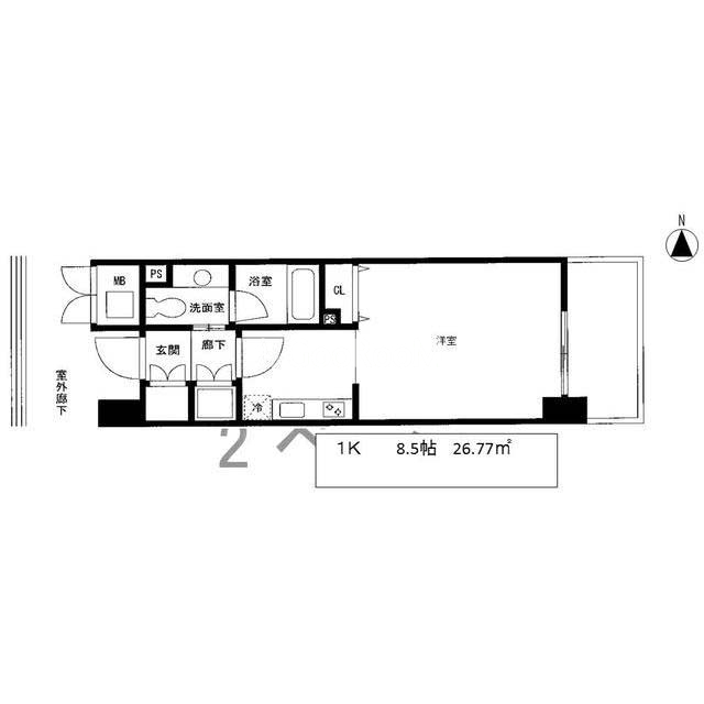 | 間取り | 1K | 専有面積 | 26.77㎡ |