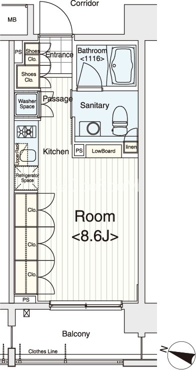 | 間取り | 1R | 専有面積 | 25.2㎡ |