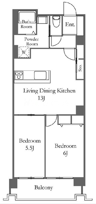 | 間取り | 2LDK | 専有面積 | 57.98㎡ |