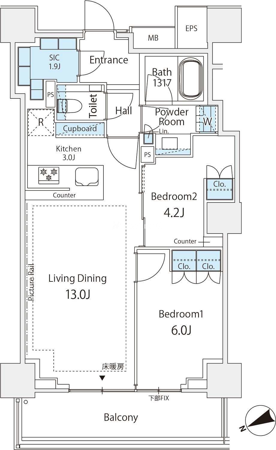 | 間取り | 2LDK | 専有面積 | 59.97㎡ |