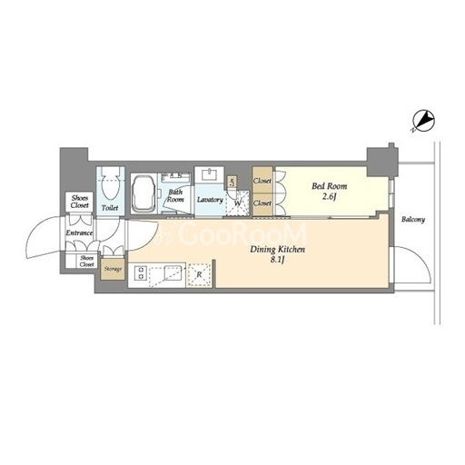 | 間取り | 1DK | 専有面積 | 28.81㎡ |