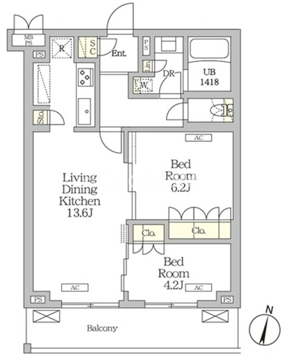 | 間取り | 2LDK | 専有面積 | 55.86㎡ |