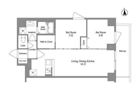 | 間取り | 2LDK | 専有面積 | 54.83㎡ |
