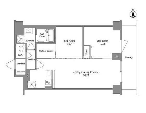 | 間取り | 2LDK | 専有面積 | 54.83㎡ |