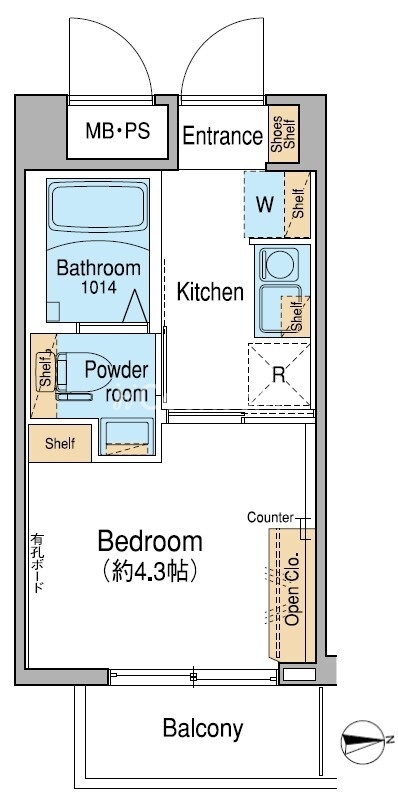 | 間取り | 1K | 専有面積 | 16.66㎡ |