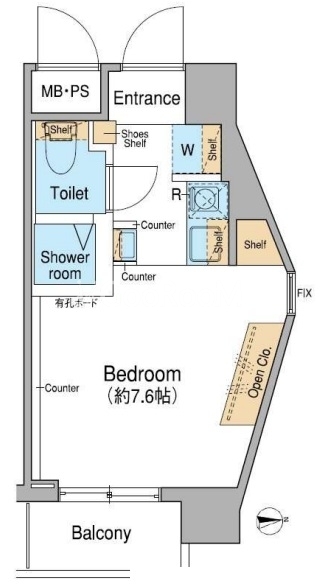 | 間取り | 1R | 専有面積 | 18.06㎡ |