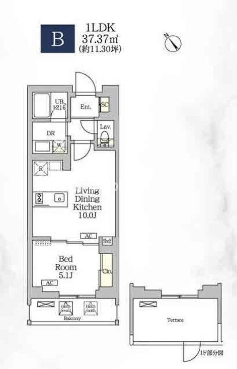 間取り | 1LDK | 専有面積 | 37.37㎡ |