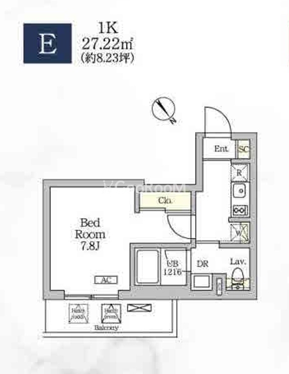 | 間取り | 1K | 専有面積 | 27.22㎡ |