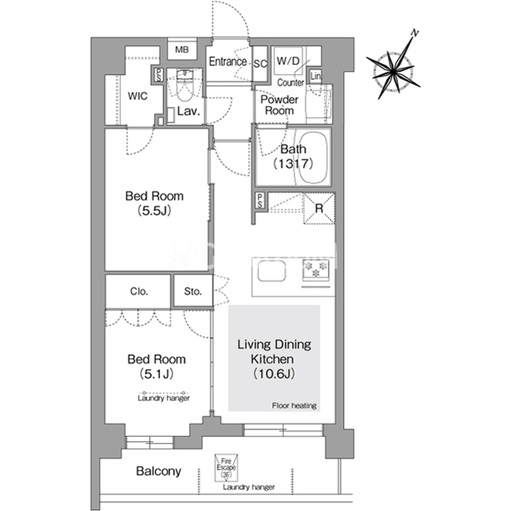 | 間取り | 2LDK | 専有面積 | 50.7㎡ |