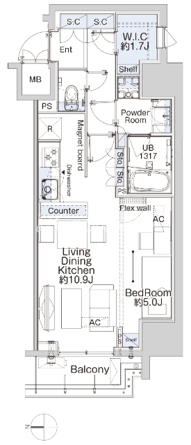 間取り | 1LDK | 専有面積 | 42.58㎡ |