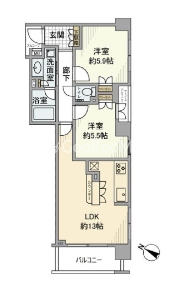 | 間取り | 2LDK | 専有面積 | 56.07㎡ |