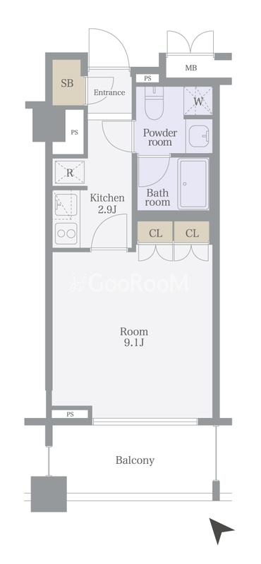 | 間取り | 1K | 専有面積 | 29.39㎡ |