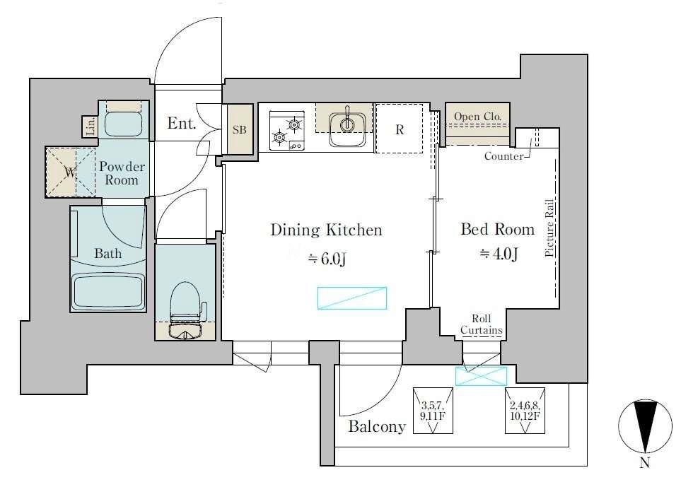 | 階数 | 5階 / 12階建 | 方位 | 北 |