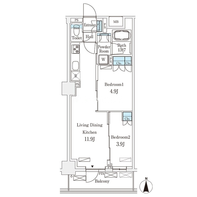 | 間取り | 2LDK | 専有面積 | 45.95㎡ |