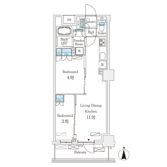 | 間取り | 2LDK | 専有面積 | 45.95㎡ |