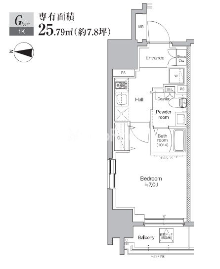 | 間取り | 1K | 専有面積 | 25.79㎡ |
