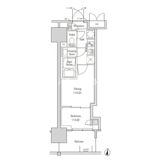 | 間取り | 2K | 専有面積 | 26.31㎡ |