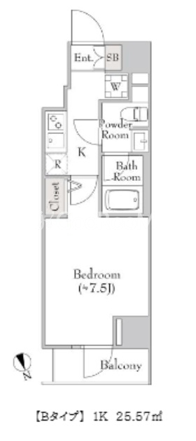 | 間取り | 1K | 専有面積 | 25.57㎡ |