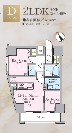 | 間取り | 2LDK | 専有面積 | 43.33㎡ |