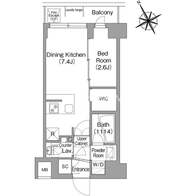 間取り | 1DK | 専有面積 | 26.32㎡ |