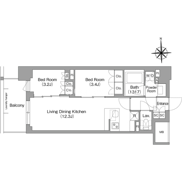 | 間取り | 2LDK | 専有面積 | 45.2㎡ |