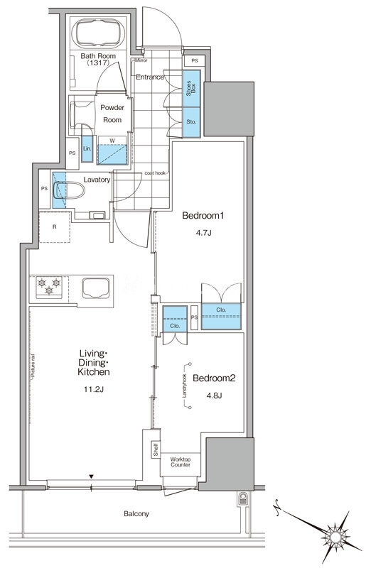 | 間取り | 2LDK | 専有面積 | 56.74㎡ |