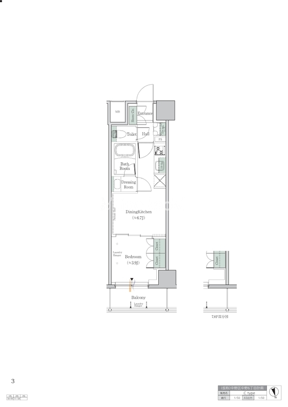 | 間取り | 1DK | 専有面積 | 27.09㎡ |