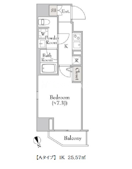 | 間取り | 1K | 専有面積 | 25.57㎡ |