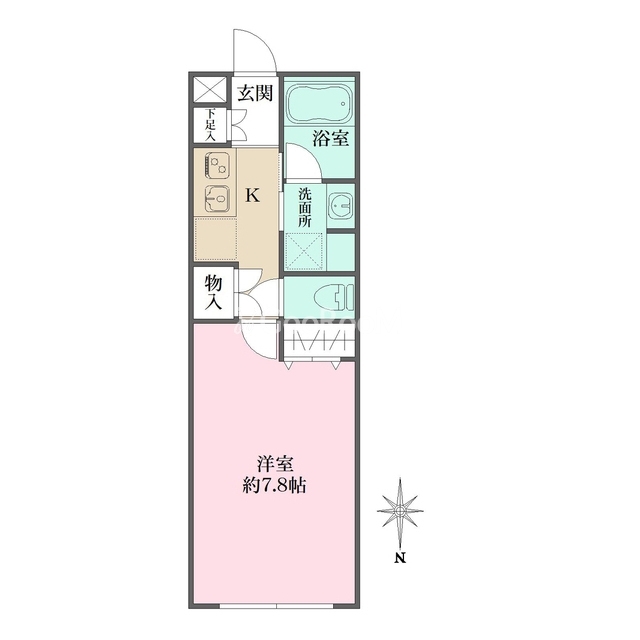 礼金0.0ヶ月、 北向き、 広さ25.31㎡のお部屋です。