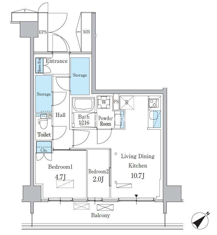 | 間取り | 2LDK | 専有面積 | 46.85㎡ |