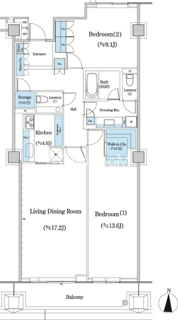 | 間取り | 2LDK | 専有面積 | 106.39㎡ - 109.76㎡ |
