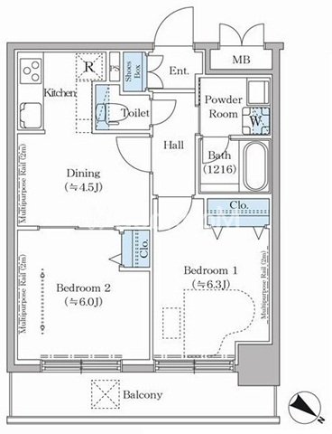 間取り | 2DK | 専有面積 | 45.72㎡ |