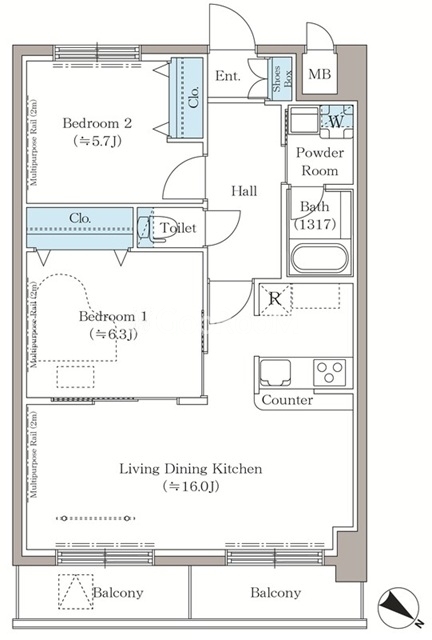 | 間取り | 2LDK | 専有面積 | 62.94㎡ |
