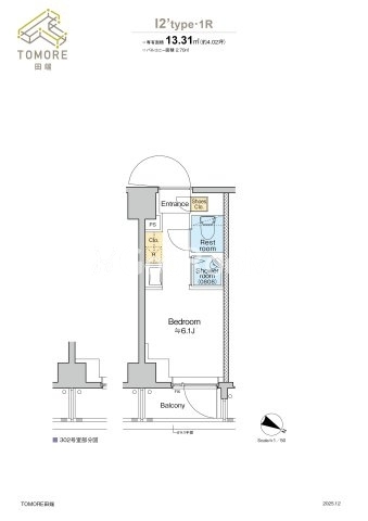 | 間取り | 1R | 専有面積 | 13.32㎡ |