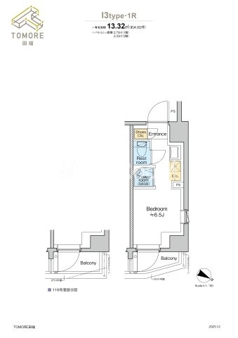 | 間取り | 1R | 専有面積 | 13.32㎡ |