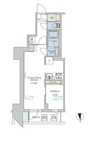 礼金0.0ヶ月、 北向き、 広さ35.4㎡のお部屋です。