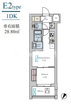 | 間取り | 1DK | 専有面積 | 28.8㎡ |