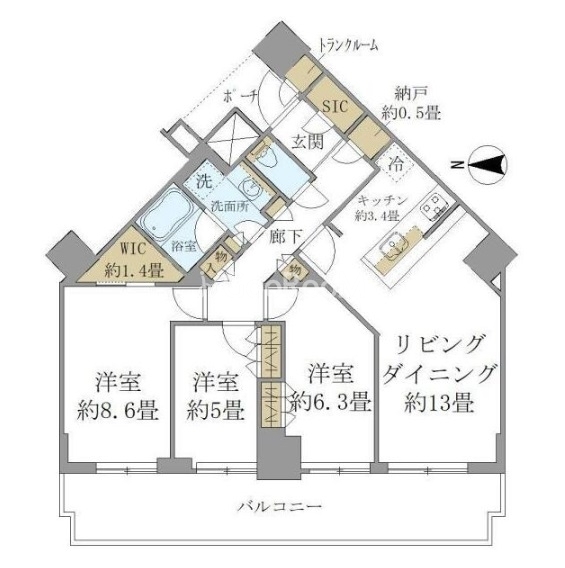 西向き、 広さ84.26㎡のお部屋です。