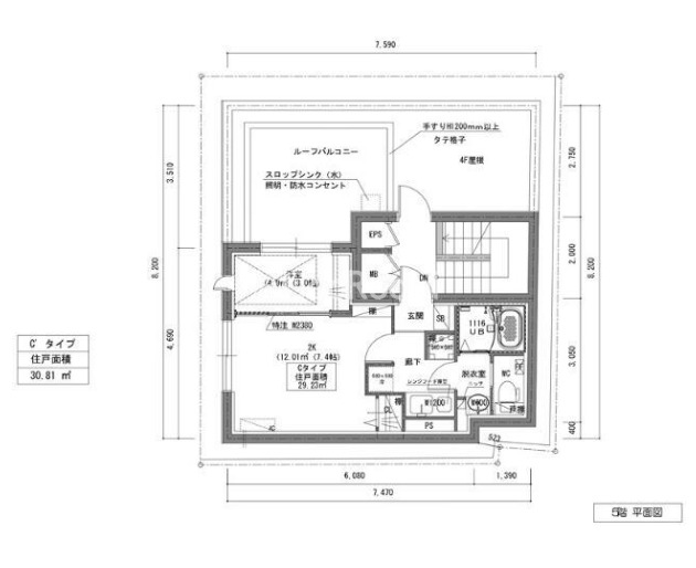 | 間取り | 2K | 専有面積 | 30.8㎡ |