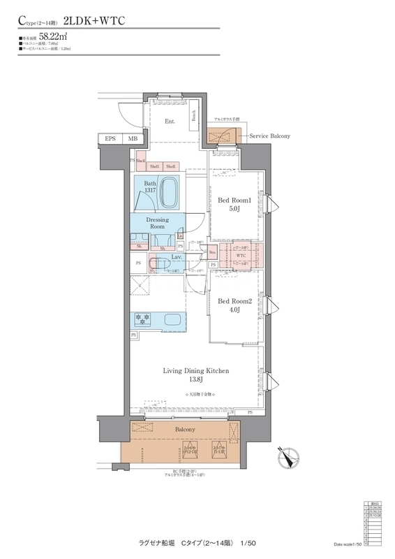 | 間取り | 2LDK | 専有面積 | 58.22㎡ |