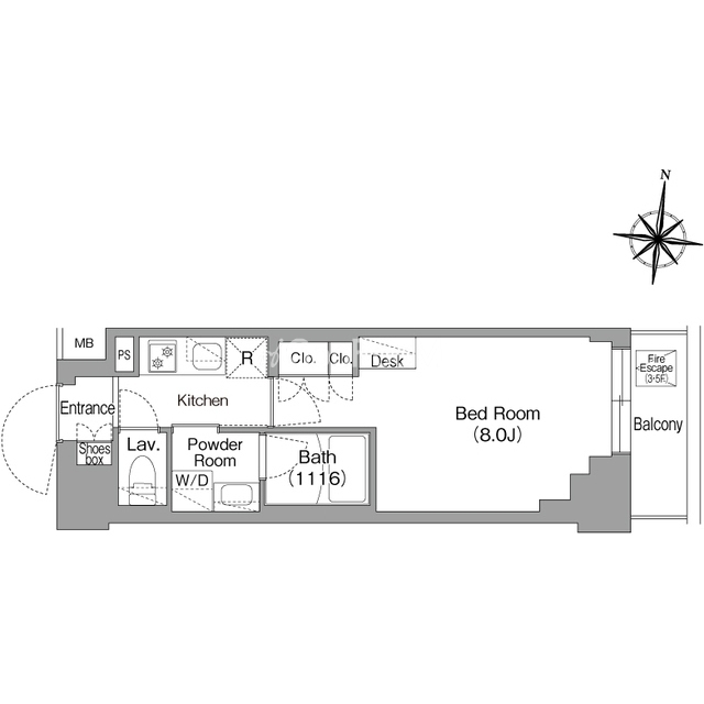 | 間取り | 1K | 専有面積 | 25.14㎡ |