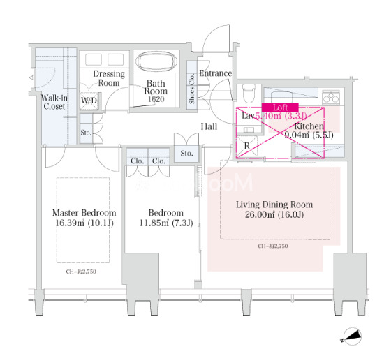 間取り | 2LDK | 専有面積 | 90.43㎡ |